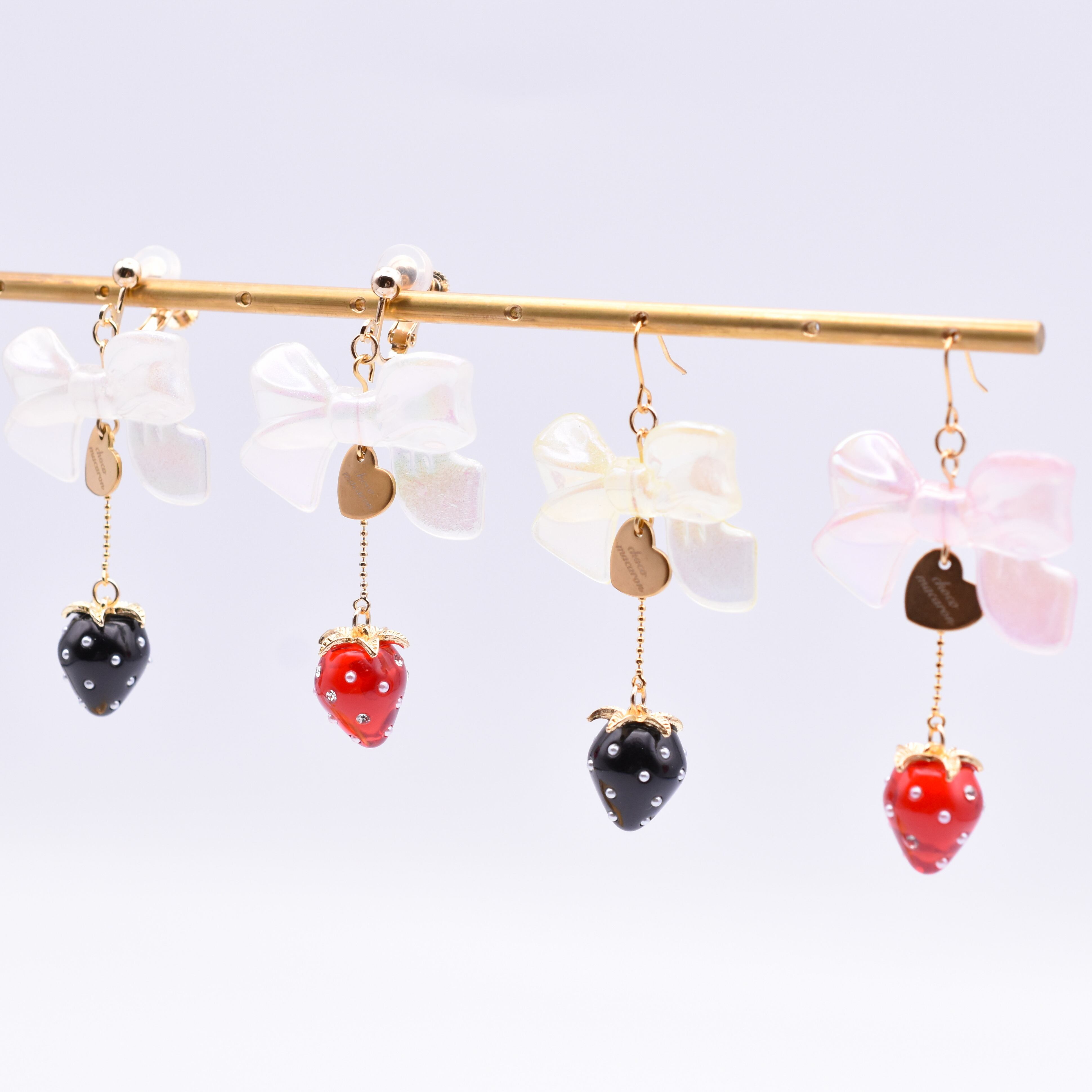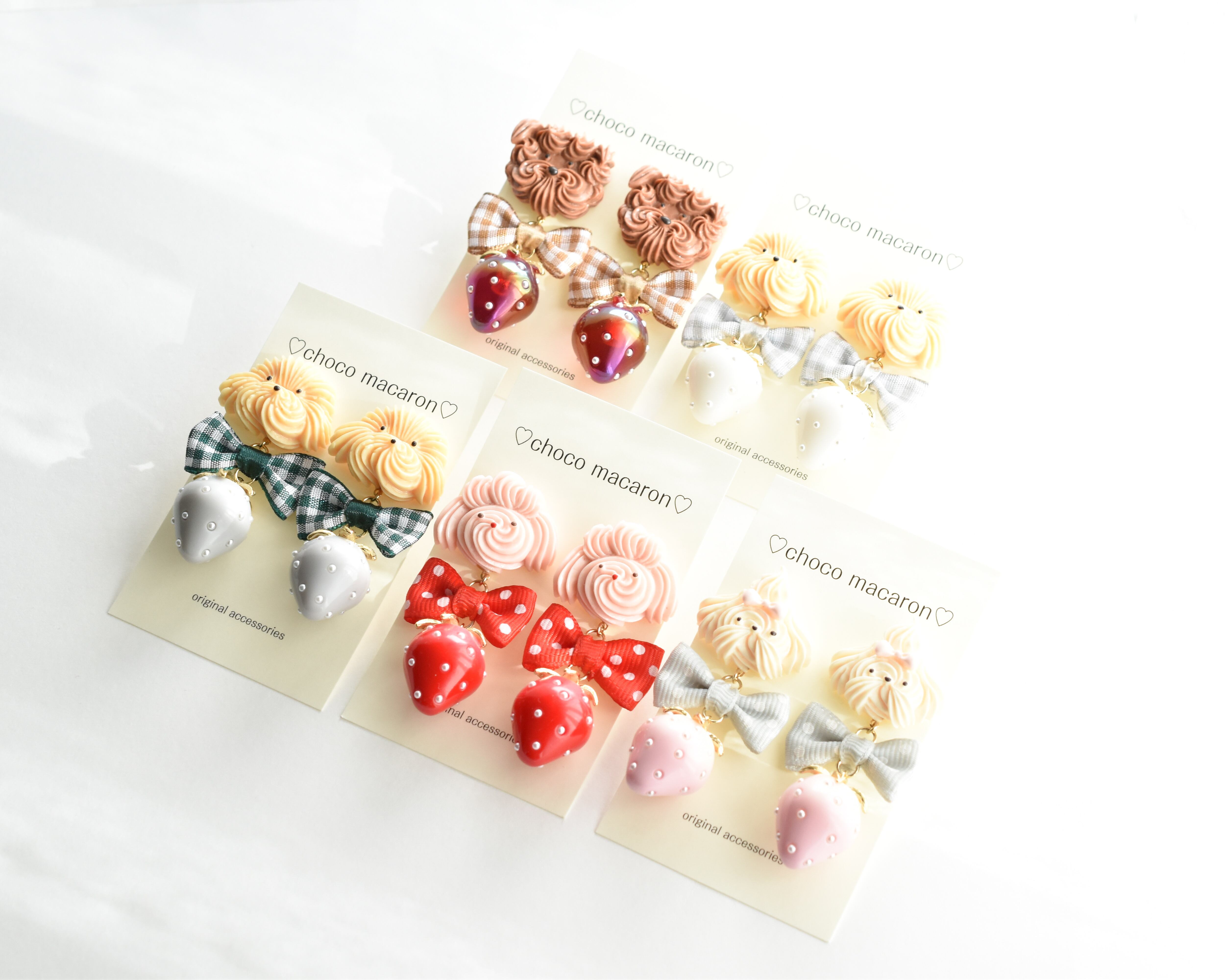 全ての作品に、大小様々なイチゴパーツがついていて
