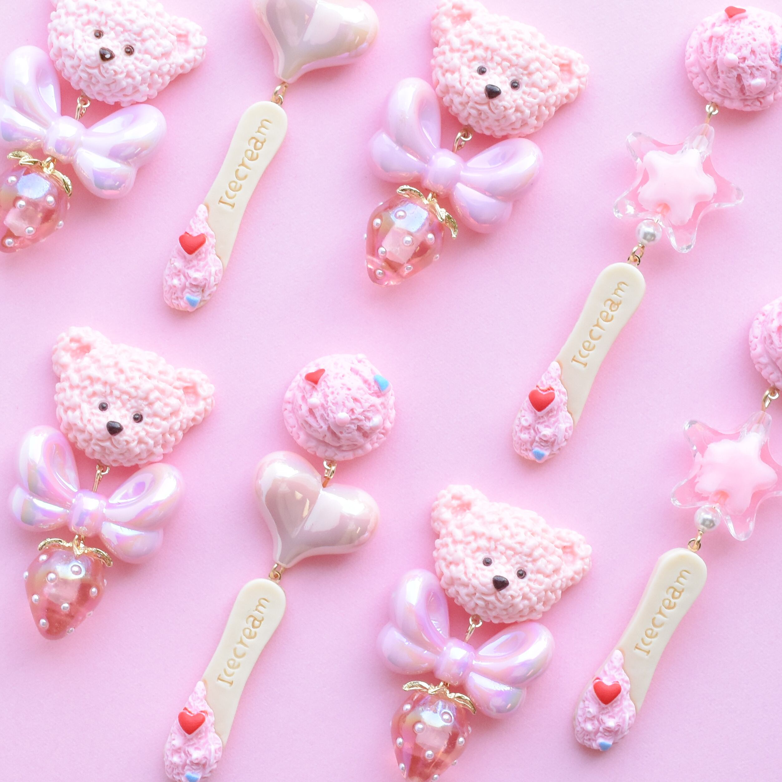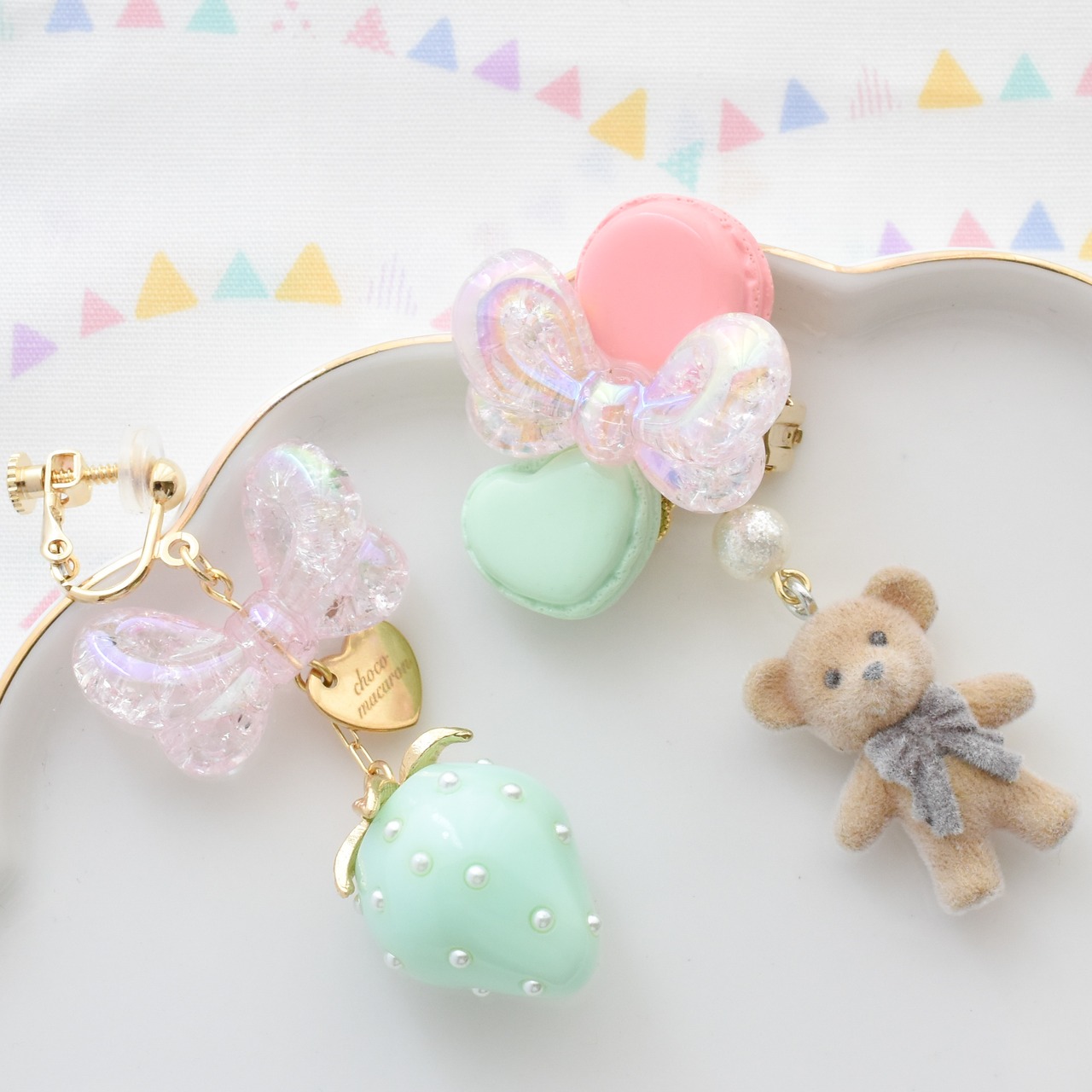 くまちゃん、わんちゃん、いちごにリボンと